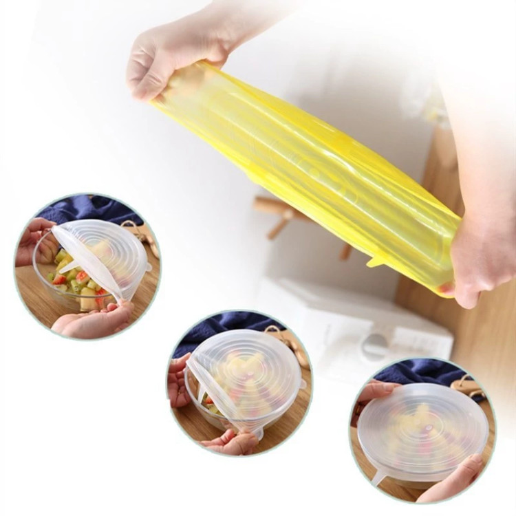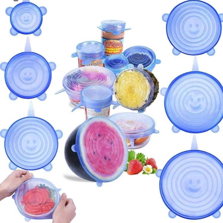 نگهداری از غذا در یخچال گاها به خاطر نبود درپوش مناسب باعث ترکیب بو و از بین رفتن عطر غذا و مواد خوراکی می شود. درپوش محافظ غذا از جنس درپوش های سیلیکونی با مقاومت حرارتی و قابلیت انعطاف پذیری فوق العاده و همچنین قابل استفاده در ماکروویو در 6 سایز متفاوت، تقریبا تمام ظروف آشپزخانه شما را پوشش می دهند. این محصول بر روی انواع ظروف با شکل های مختلف به راحتی قرار گرفته و از تبادل هوای میان محیط و محتویات ظرف جلوگیری می کند تا طراوت و تازگی غذا، سالاد، سبزیجات، میوه ها و …حفظ شود. همچنین قابل استفاده در فریزر و مایکروویو است. این محصول قابل شستشو است و می توان آن را به راحتی در ماشین ظرفشویی شست. در بسته بندی مخصوص این محصول 6 عدد درپوش سیلیکونی شفاف و بدون مواد رنگی مضر قرار دارد که به راحتی قابل شست و شو است و در سایز بندی های مختلف قرار دارد تا بتوان آن ها را بر روی انواع مواد غذایی قرار داد.