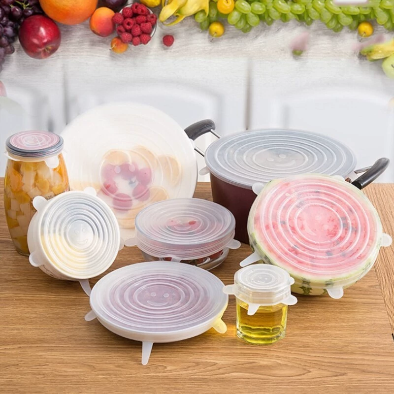 نگهداری از غذا در یخچال گاها به خاطر نبود درپوش مناسب باعث ترکیب بو و از بین رفتن عطر غذا و مواد خوراکی می شود. درپوش محافظ غذا از جنس درپوش های سیلیکونی با مقاومت حرارتی و قابلیت انعطاف پذیری فوق العاده و همچنین قابل استفاده در ماکروویو در 6 سایز متفاوت، تقریبا تمام ظروف آشپزخانه شما را پوشش می دهند. این محصول بر روی انواع ظروف با شکل های مختلف به راحتی قرار گرفته و از تبادل هوای میان محیط و محتویات ظرف جلوگیری می کند تا طراوت و تازگی غذا، سالاد، سبزیجات، میوه ها و …حفظ شود. همچنین قابل استفاده در فریزر و مایکروویو است. این محصول قابل شستشو است و می توان آن را به راحتی در ماشین ظرفشویی شست. در بسته بندی مخصوص این محصول 6 عدد درپوش سیلیکونی شفاف و بدون مواد رنگی مضر قرار دارد که به راحتی قابل شست و شو است و در سایز بندی های مختلف قرار دارد تا بتوان آن ها را بر روی انواع مواد غذایی قرار داد.