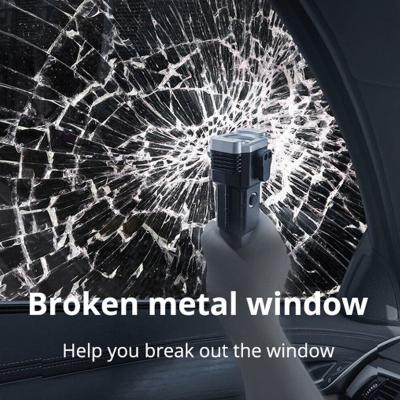 دارای تیغ برش کمربند خودرو و چکش اضطراری تعبیه شده بر روی بدنه