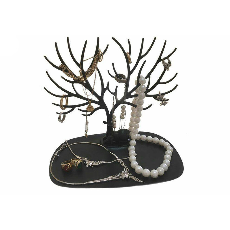 دستهبندی وسایل اتاق به شکل هوشمندانه و مفید بهطوری که لازم نباشد همه وسایل را داخل کشوها و کمدها بگذاریم؛ نیازمند وسایلی ابتکاری است که مخصوص این کار طراحی شده باشند. «آویز زیورآلات طرح شاخ گوزن یک وسیله ابتکاری است که علاوه بر کاربردی بودن جنبهی تزیینی هم دارد. با استفاده از این آویز میتوانید به زیورآلات خود نظم داده و علاوه بر آن، از گره خوردن احتمالی آنها به یکدیگر جلوگیری کنید. رنگ سفید و مشکی آویز زیورآلات طرح شاخ گوزن برای اتاق خواب مناسب است. کاربرد اصلی آویز جواهرات برای نظم دادن زیورآلات و حتی لوازم آرایش است. اگر شما فرد خوشذوقی باشید میتوانید این محصول را روی میز پذیرایی قرار دهید و بر شاخههای آن پرنده و میوههای تزیینی آویزان کنید و حتی به عنوان ظرف شیرینی و شکلات از آن استفاده کنید. این آویز کوچک است و میتوان آن را با تمام وسایلی که روی آن قرار دارد داخل کمد قرار داد.